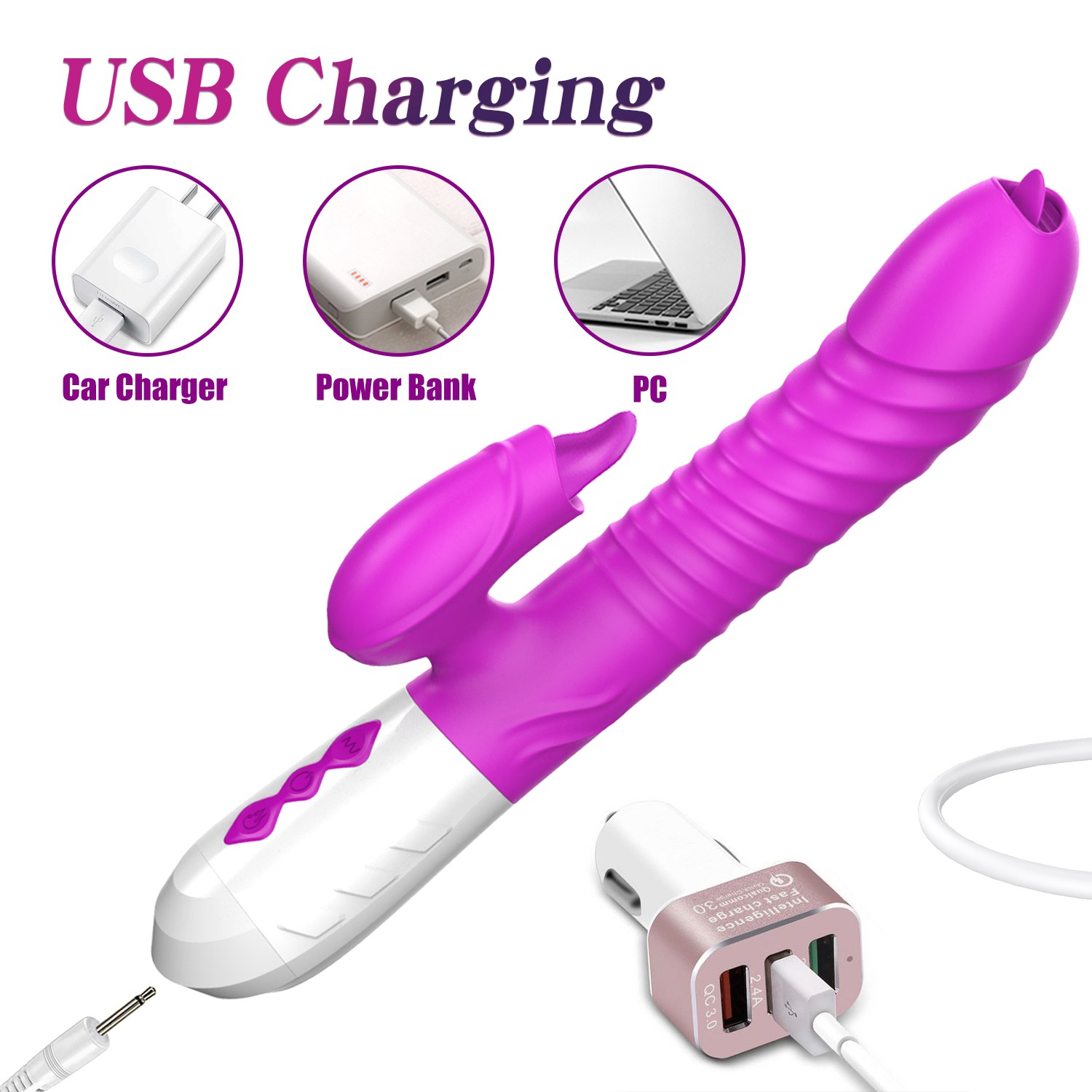 Thrusting G Spot Rabbit Dildo Vibrator, Tongue Licking Rotating Vibrating Women Couples Adult Sex Toys, Female Clitoris Vibrator Wand Stimulator Toy, Dildos Vibrators For Woman Her Pleasure